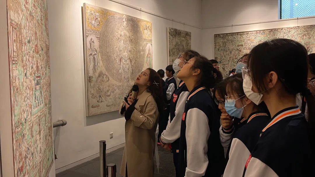 仪式结束后,公司领导班子带领小淀中学师生对敦煌壁画艺术精品高校公益巡展、“邂逅中河头 , 不负安幸生”主题展览、“扬帆沧海迎激浪,勇立潮头新航程”主题团日展品、革命丰碑——天津市红色旧址展览等进行了参观讲解,了解革命历史,学习革命先辈的事迹,感受艺术魅力。