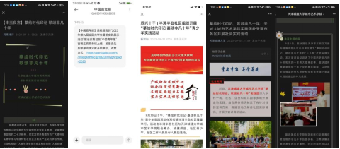 为深入学习贯彻习近平新时代中国特色社会主义思想和党的二十大精神,tyc122cc太阳成暑期实践行宣讲团以“摹绘时代印记,歌颂非凡十年”为题前往天津市各区基层单位进行实践活动,实践团运用扎实的专业技术和丰富的实践活动与各区基层单位进行互助联动,并获多家单位和媒体报道宣传。