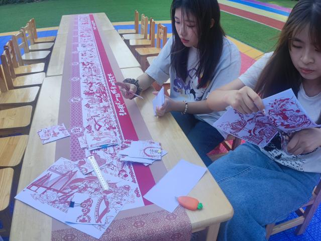 宣讲过程中,实践团以十年内各个领域的重大节点事件为创作基调,以版画形式进行描绘,形成长卷。并进行了周边延伸,创作了多种类型的文创产品。在与各区不同基层单位进行共建交流时,针对不同的人群做了专项实践活动形式。特别是针对于乡村基层单位,我们结合宣讲开展墙绘等美化乡村的实践活动,为乡村振兴添砖加瓦,丰富宣讲内涵。