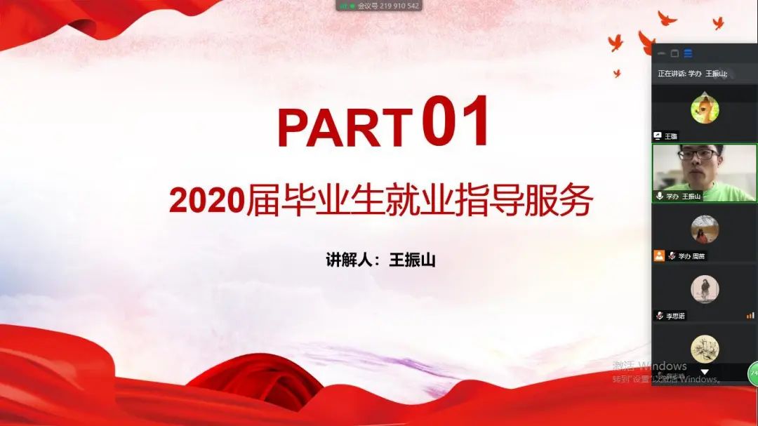 会上,王振山老师、刘杰老师、张瑾老师分别就毕业生就业指导服务、团组织关系接转、党组织关系接转三个方面展开讲解,明确了相关流程及注意事项。