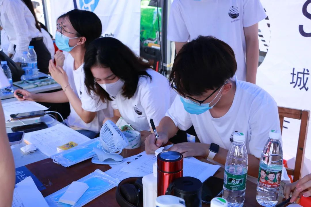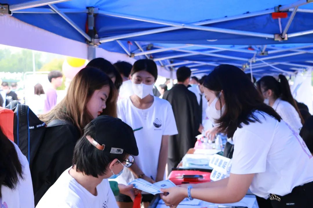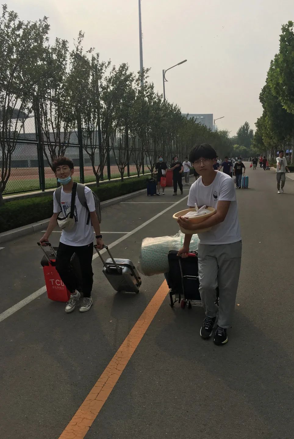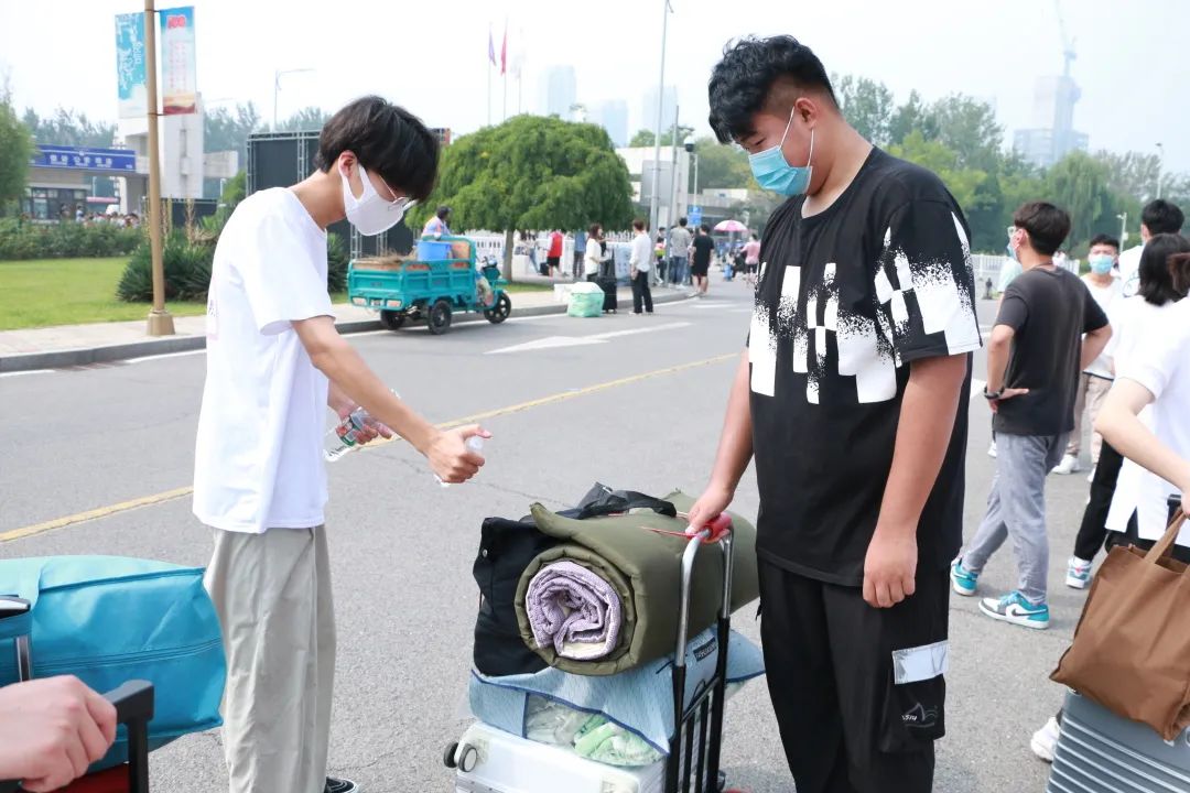 两个接待点,前来报到的新生络绎不绝,员工们在志愿者引导下,依次经过行李消杀、消毒净手、换取口罩,再到检验健康码、行程码、48小时核酸检测阴性证明和有关证明材料等步骤后,方可进入校园。