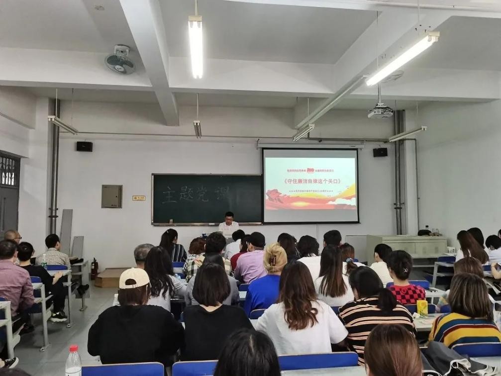 5月27日,公司党委副书记、纪委书记陈文科为公司全体师生党员和新确定入党积极分子讲授“守住廉洁自律这个关口”廉政主题党课。公司党委书记王建国、经理张小开、副经理王璞、杨艳红参加听课。