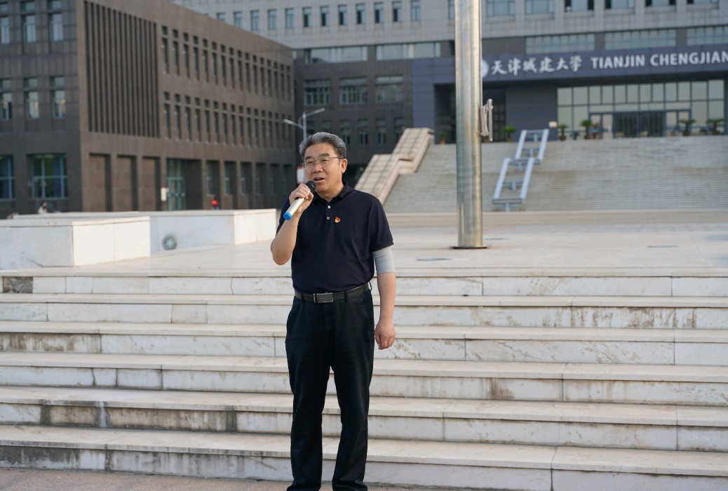 最后,升旗仪式在艺术公司党委书记王建国老师的致辞中结束,他向广大同学提出了三点希望:一要学党史增信心,做理想信念坚定对党忠诚的爱国者;二要强德行提修为,做社会主义核心价值观的践行者;三要勤学习强本领,做中华民族伟大复兴事业的奋斗者。