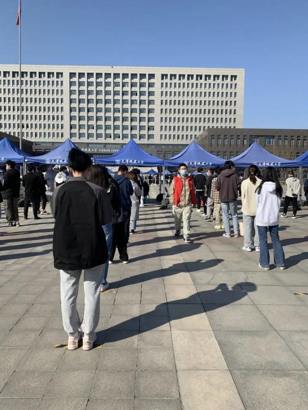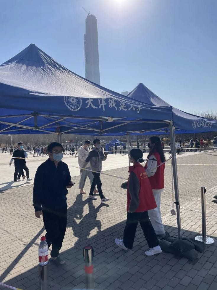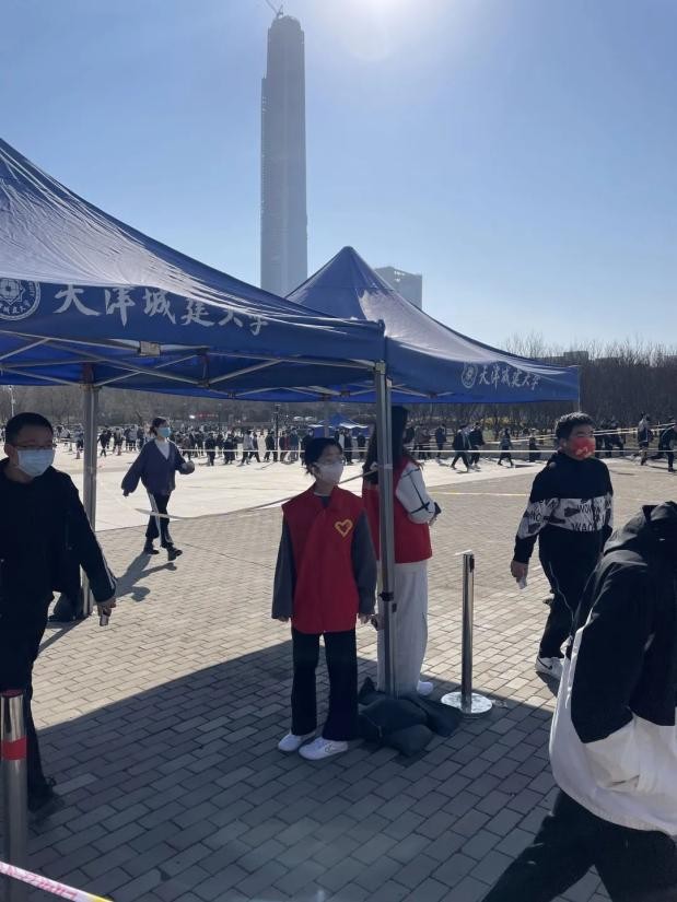 志愿者们引领同学们有序排队做核酸,减少不必要的时间,也会减少不必要危险。