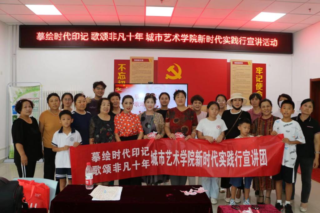 9月1日,宣讲团赴天津市东丽区万新街道海颂园社区内开展主题为“摹绘时代印记,歌颂非凡十年的“三下乡”社会实践活动。本次宣讲活动讲述了中国历史非凡的十年和党的十年伟大变革故事,宣讲团用画笔来描绘十年之中的难忘瞬间,以此映射出祖国的伟大进步和在我党带领下全国人民创造出的非凡成就。