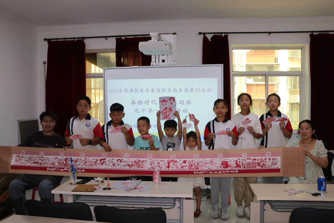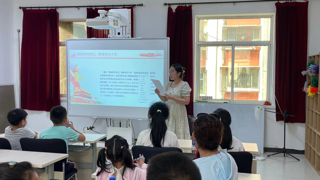 自党史学习教育开展以来,滨海新区中塘镇新时代文明实践所依托志愿服务队伍,深刻挖掘镇域范围内的红色资源,精心组织开展形式多样的活动,打造全方位、多维度、立体化党史学习教育新阵地。8月31日上午,宣讲团一行人来到中塘镇潮宗桥村村委会开展线下宣讲活动。在宣讲开始前,宣讲员与小朋友们进行了交流互动,共同回忆过去十年祖国的伟大成就。之后,宣讲员为小朋友们展示宣讲团绘制的非凡十年历史长卷,并为其讲解长卷中各种图形所对应的重大事件。宣讲员告诫小朋友们党的伟大成就来之不易,在以后的日子里一定要努力学习等长大以后报效祖国。