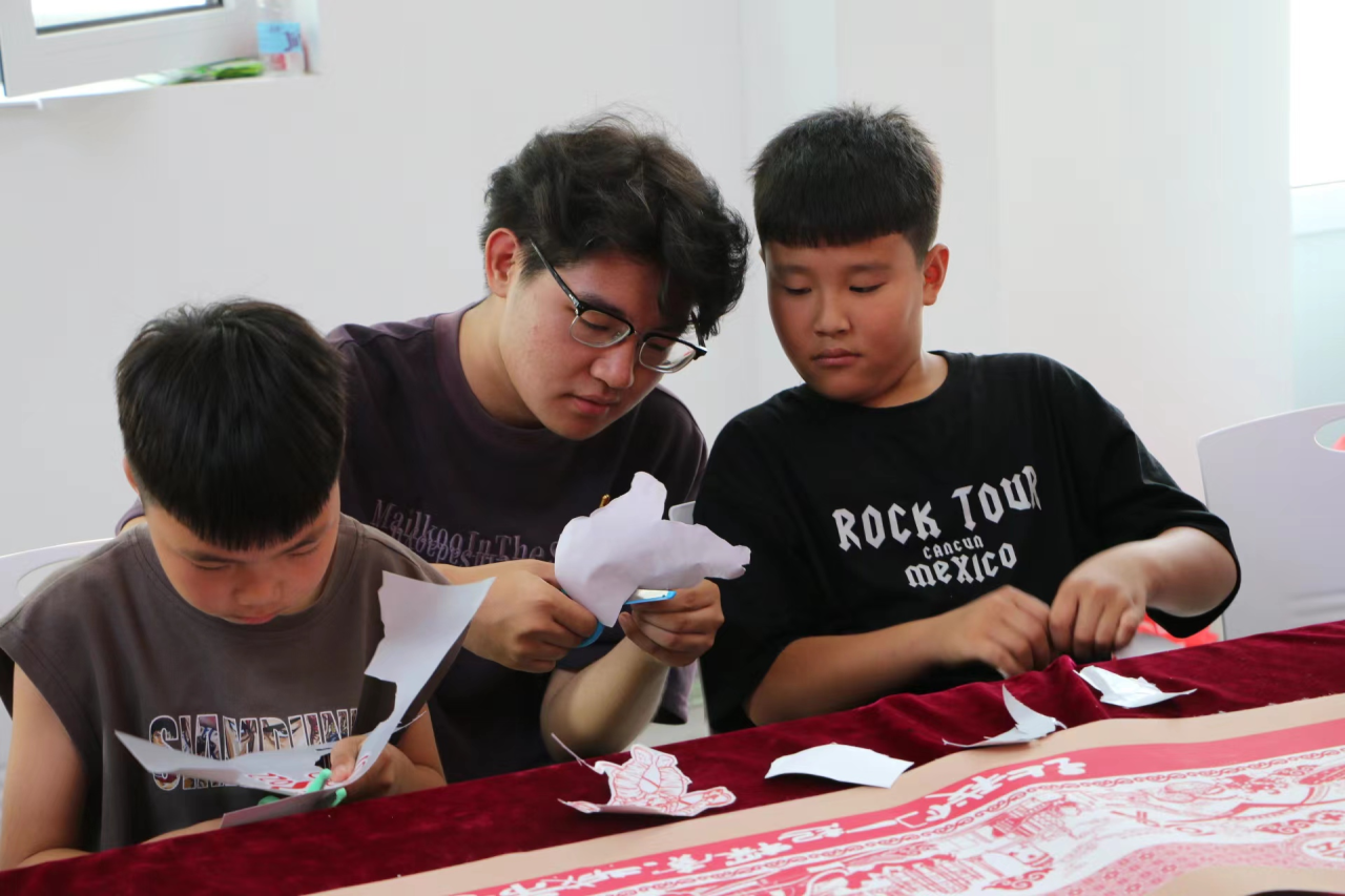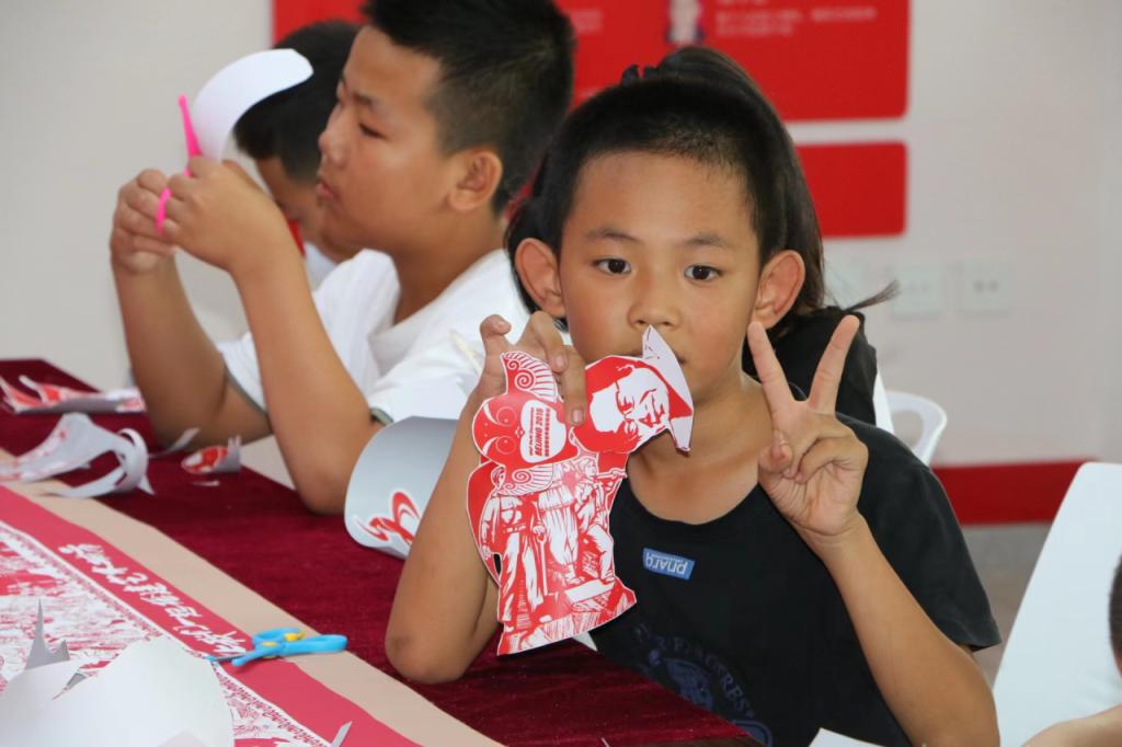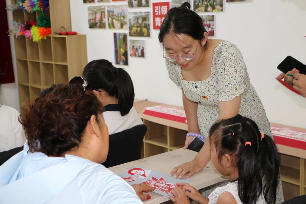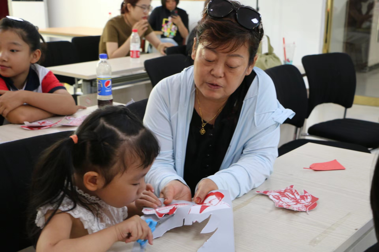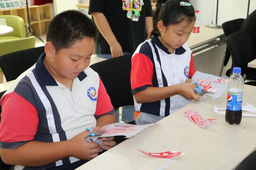 宣讲结束后,宣讲团成员与小朋友们共同进行了剪纸游戏,纸上画着的图案正是从宣讲团成员们绘制的非凡十年历史长卷中节选的,通过剪纸活动,引导小朋友们回忆非凡十年中的重大历史事件,同时激发了小朋友们的学习兴趣。