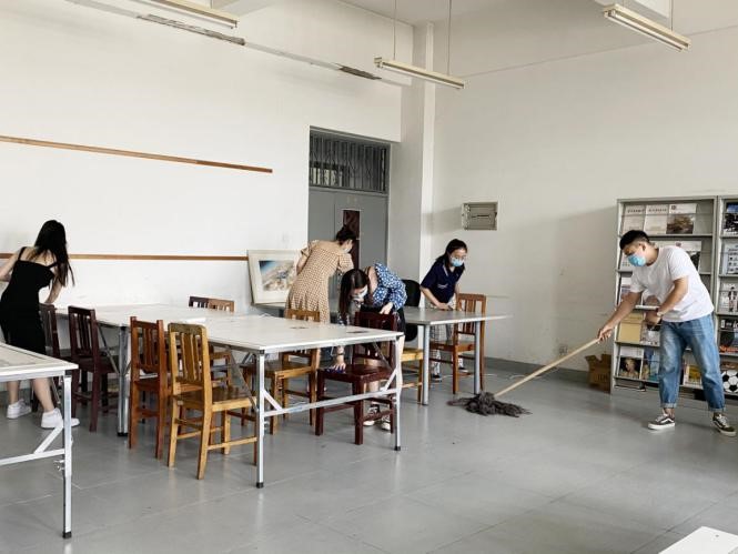 讲座圆满结束后,全体研究生在艺术楼412进行大扫除活动。在疫情防控常态化的大背景下,同学们不忘习近平总书记的嘱托,切实参与到爱国卫生活动中,创造干净健康的学习环境。