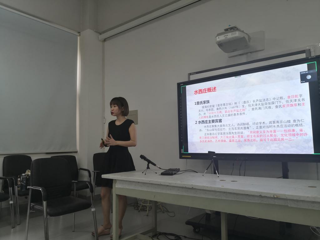 席老师本次讲座主题为“查式水西庄”。她首先以南北园林区别为导向,引出天津的查式水西庄私家园林,具体从水西庄的整体概述、与红楼梦《大观园》的渊源、水西庄的发展历程等角度进行探析。