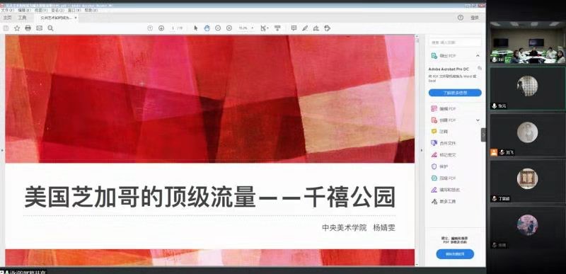 本次讲座主要分为三部分。第一部分,杨婧雯在阐释城市公共艺术理论基础上,对美国芝加哥千禧公园的公共性、交互性与趣味性三部分内容进行深入解析。继而引出对天津建筑场所的思考,结合天津市康莱德酒店案例进行讲述。