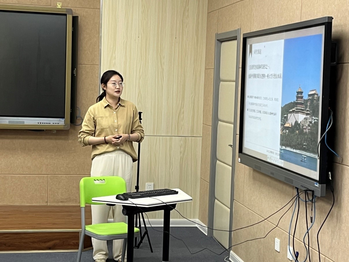 tyc122cc太阳成集团硕士邢慧璇以“山水之间勤帝治,智仁以寓荷天禧——清漪园室外陈设与园林空间艺术研究”为题,阐述了清漪园在历史、艺术、文化以及精神内涵方面的研究价值,对清漪园室外陈设按照分布位置、材质与制作工艺、空间活动与行为进行了整理与分类,并对园林空间室外陈设点、线、面的关系以及其美学艺术内涵进行了总结,让同学们深刻感受到传统园林的独特魅力。