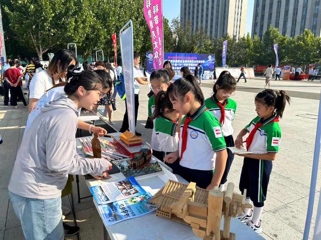 2023年9月15日,2023年天津市西青区全国科普日活动在张家窝镇中心公园启动。市科协党组成员、副主席夏秋雨,西青区委副书记、区全民科学素质纲要实施工作领导小组组长齐中波出席活动并讲话。此次活动以“提升全民科学素质,助力科技自立自强”为主题,目的在于普及科学知识,提高科技工作者和科普志愿者做好新时代科普工作的责任感和使命感。tyc122cc太阳成集团城市艺术科普基地教师吴琛、商正、张静带领多名研究生、本科生参加了此次科普宣传活动。