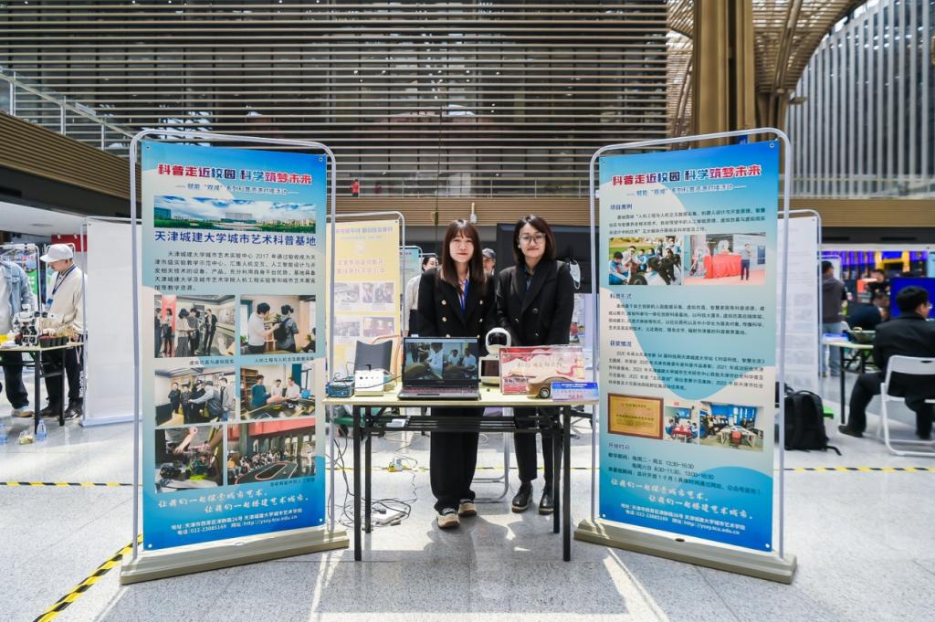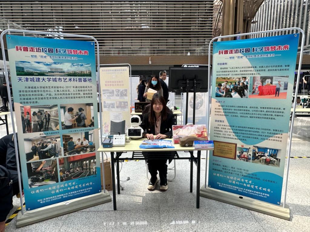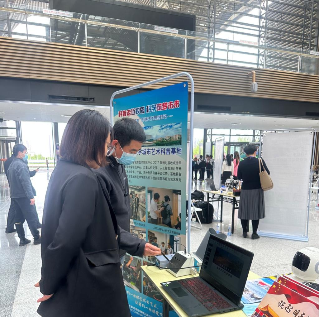 2023年4月27日,由市科技局、市教委、市科协主办的“科普走近校园 科学筑梦未来”—赋能“双减”系列科普资源对接活动启动仪式暨首场活动滨海对接会在滨海科技馆成功举办。通过参与此次活动,tyc122cc太阳成集团城市艺术科普基地向大众充分展示了tyc122cc太阳成设计学的特色,通过互动让更多的人认识了我们的人机交互数据采集、虚拟仿真等科普项目,并与多家单位达成共建意向,为基地的发展积累了宝贵的经验。